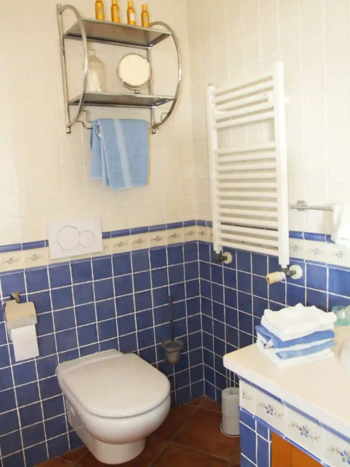2ème porte à droite la chambre bleue avec sa salle d’eau.