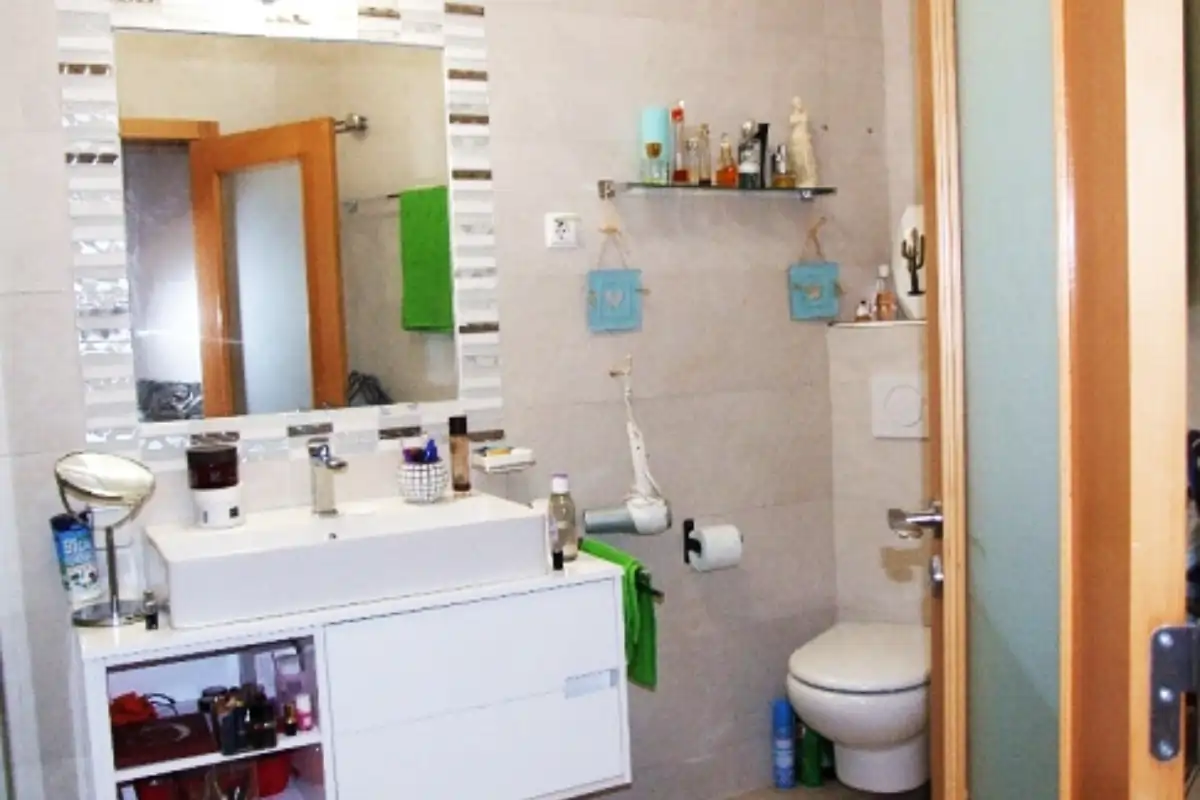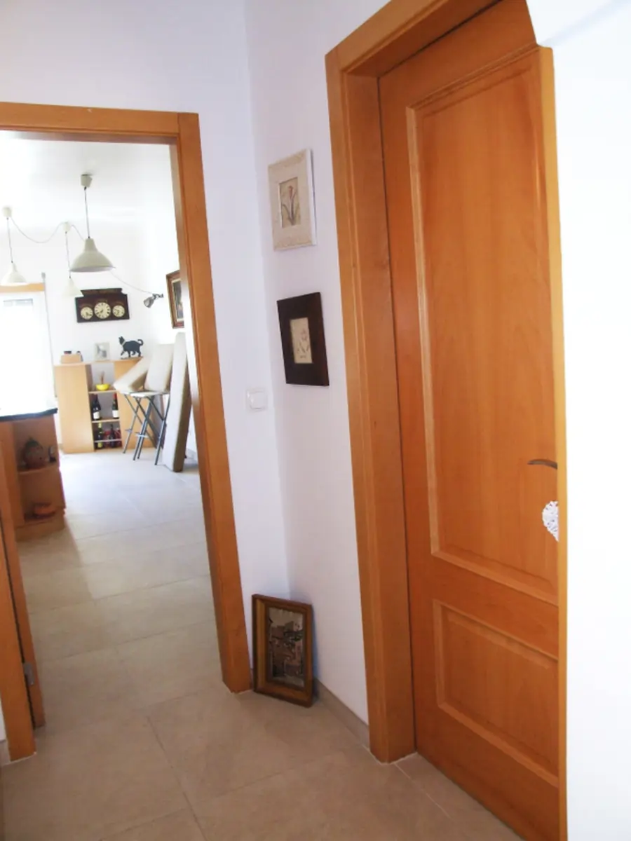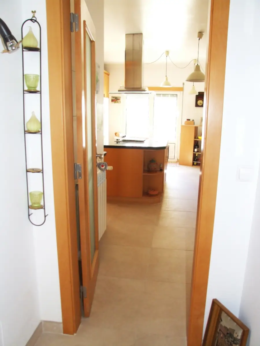 Toilettes communs, un couloir conduit à la cuisine, une porte sur la droite pour les toilettes