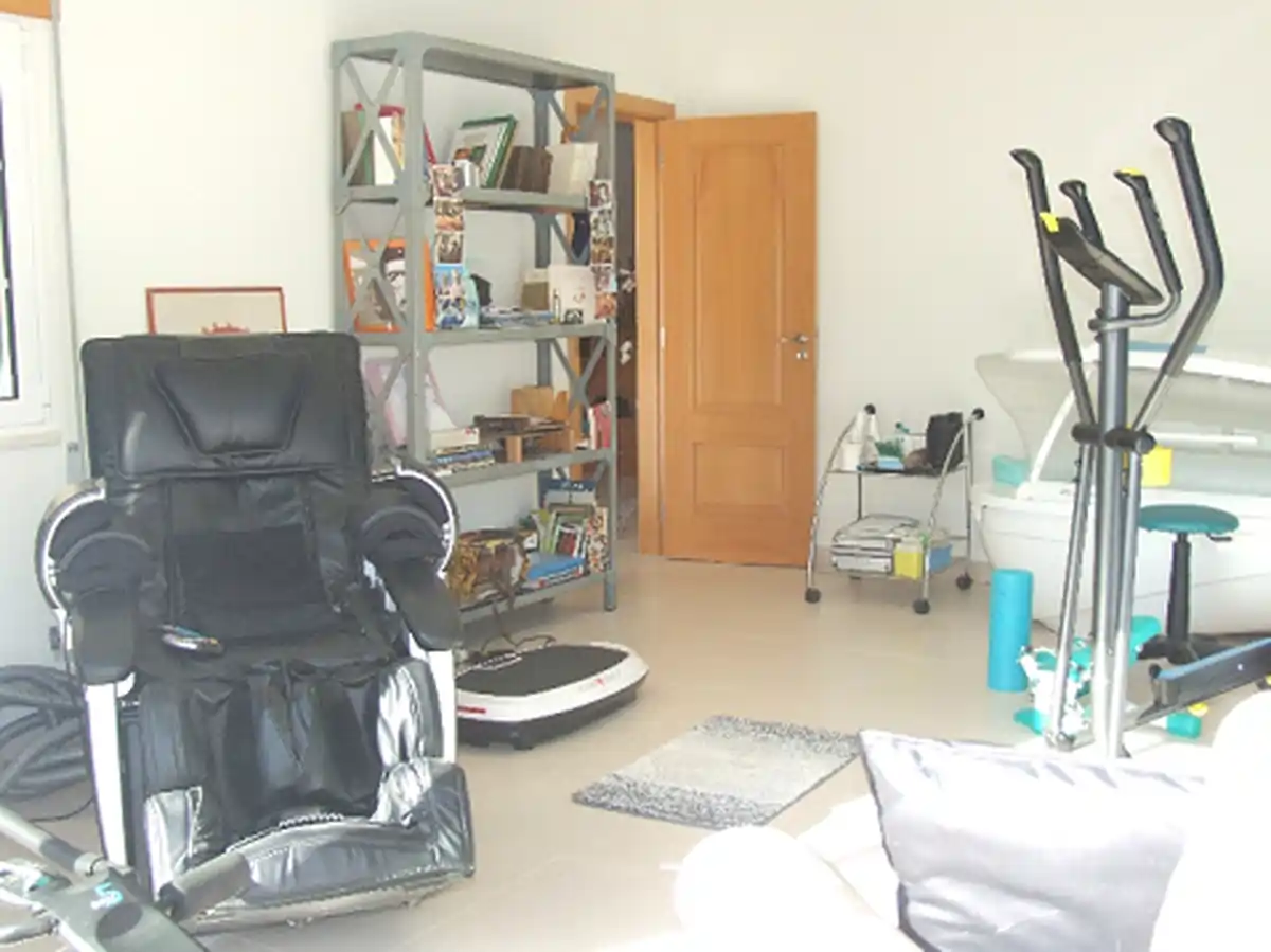 La salle de sport (de 22m²) peut faire usage de chambre, bureau. Elle possède une arrivée d’eau et écoulement.
