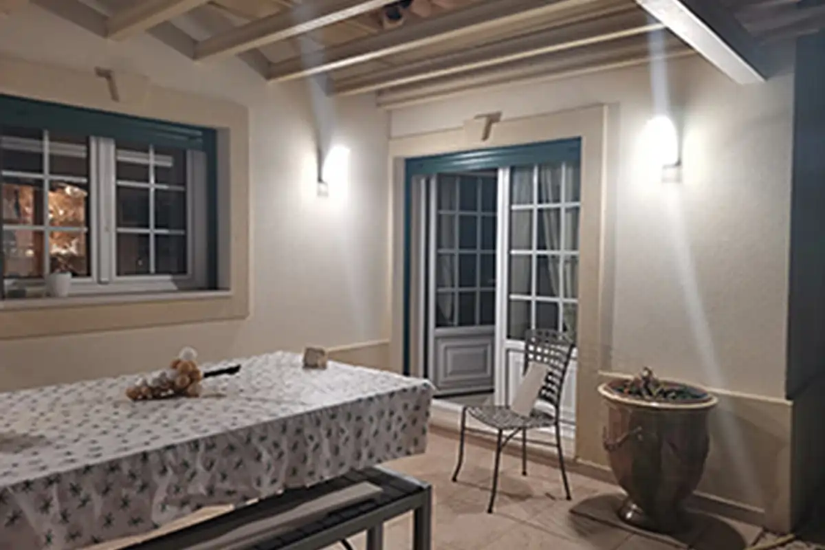 Le séjour avec accès terrasse sud et terrasse ouest avec cuisine extérieure
